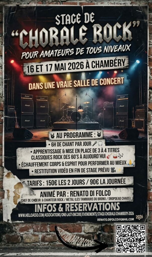 Les 16 et 17 mai 2026, plongez au cœur de la musique avec un stage de chorale unique, conçu spécialement pour vous, amateurs de tous niveaux ! Oubliez les chorales classiques : ici, on parle de puissance, d’énergie, et de pur rock n’ roll.
